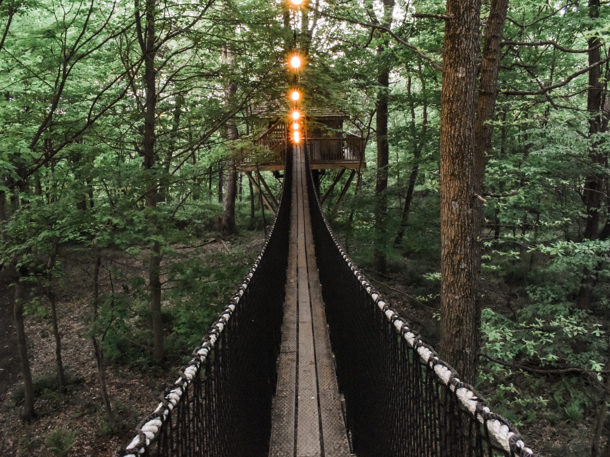 We booked the Tin Shed tree house and it was magical! Although you are truly in the trees you have the standard amenities you’d find in a hotel — bathroom, kitchen, living room, bedroom…just all tiny house sized. Our tree house had a large bridge to the entrance (which my slightly-fearful-of-heights self definitely didn’t realize was 30 ft up from the pictures), a wrap around porch, a garage door that could be pulled open for some fresh air and a fun swing down below. I’ll make note here that the one thing we forgot to pack was bug spray. Despite being in a ‘glamping’ environment you’re still in the middle of nature (and we also chose a muggy weekend in May). You can book these tree houses many other times of the year, so if the idea of bugs bothers you just choose a more dormant season.