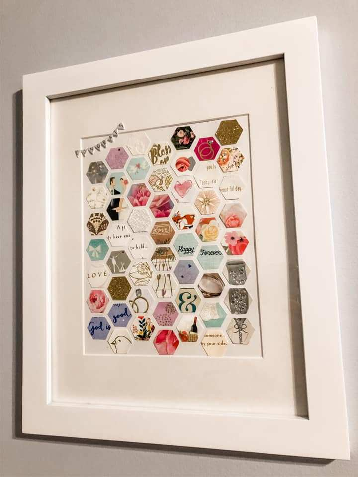 Step 1: Decide how many cards you want to include. This may also inform the size frame you need. I had space of 8inx10in to work with and managed to fit around 55, 1 inch hexagons. Again, this is entirely dependent on your preference for what shape you want and how large you want the clippings.